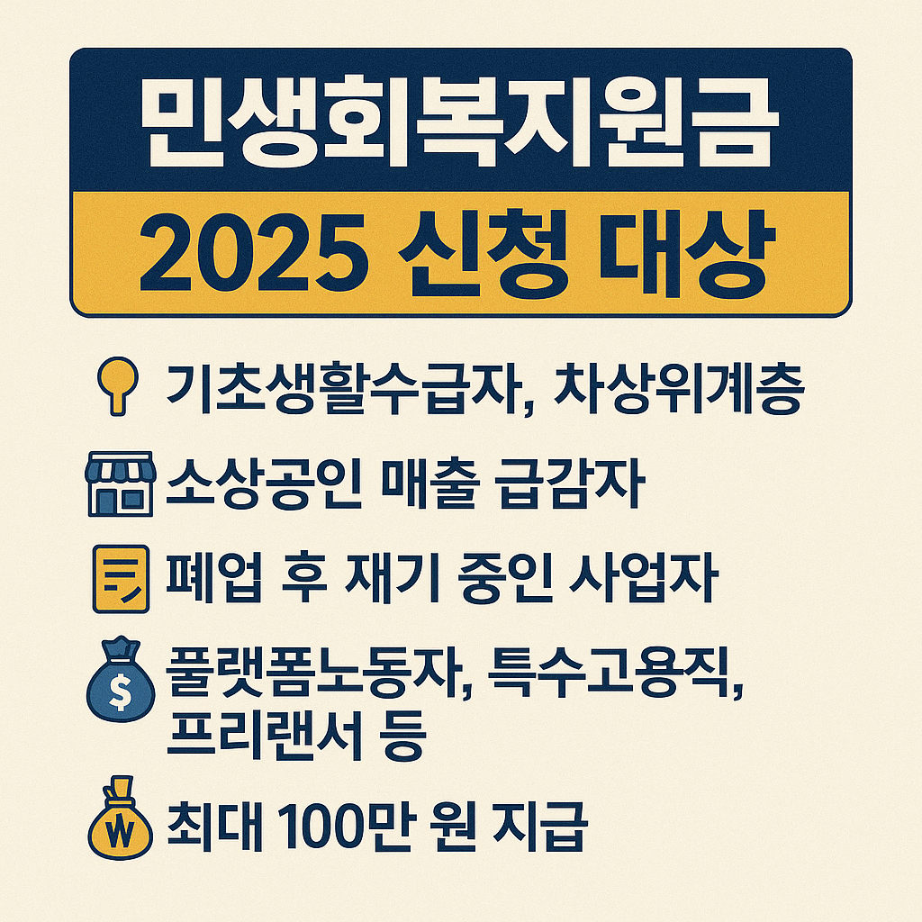 2025년에도 자영업자, 소상공인, 저소득층, 일용직 근로자를 중심으로 지원이 확대되고 있습니다.
